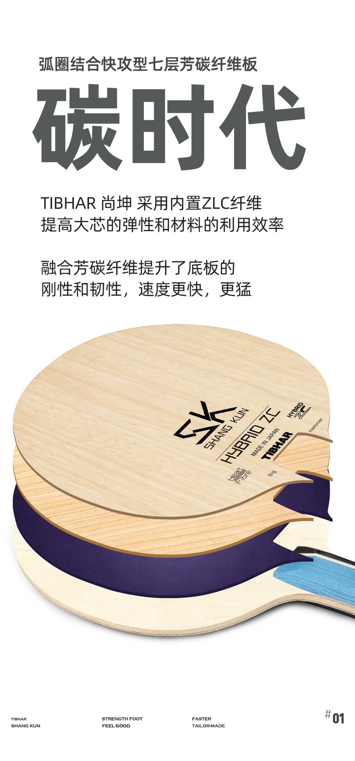 - 商品名稱(chēng):挺拔Tibhar 尚坤ZLC 專(zhuān)業(yè)底板 碳纖維底板 5+2內(nèi)置纖維