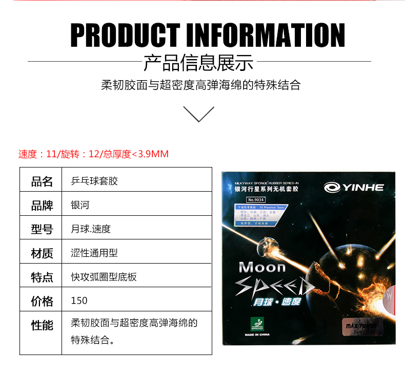 - 商品名稱(chēng):銀河Yinhe 月球速度型 專(zhuān)業(yè)套膠 澀性反膠套膠