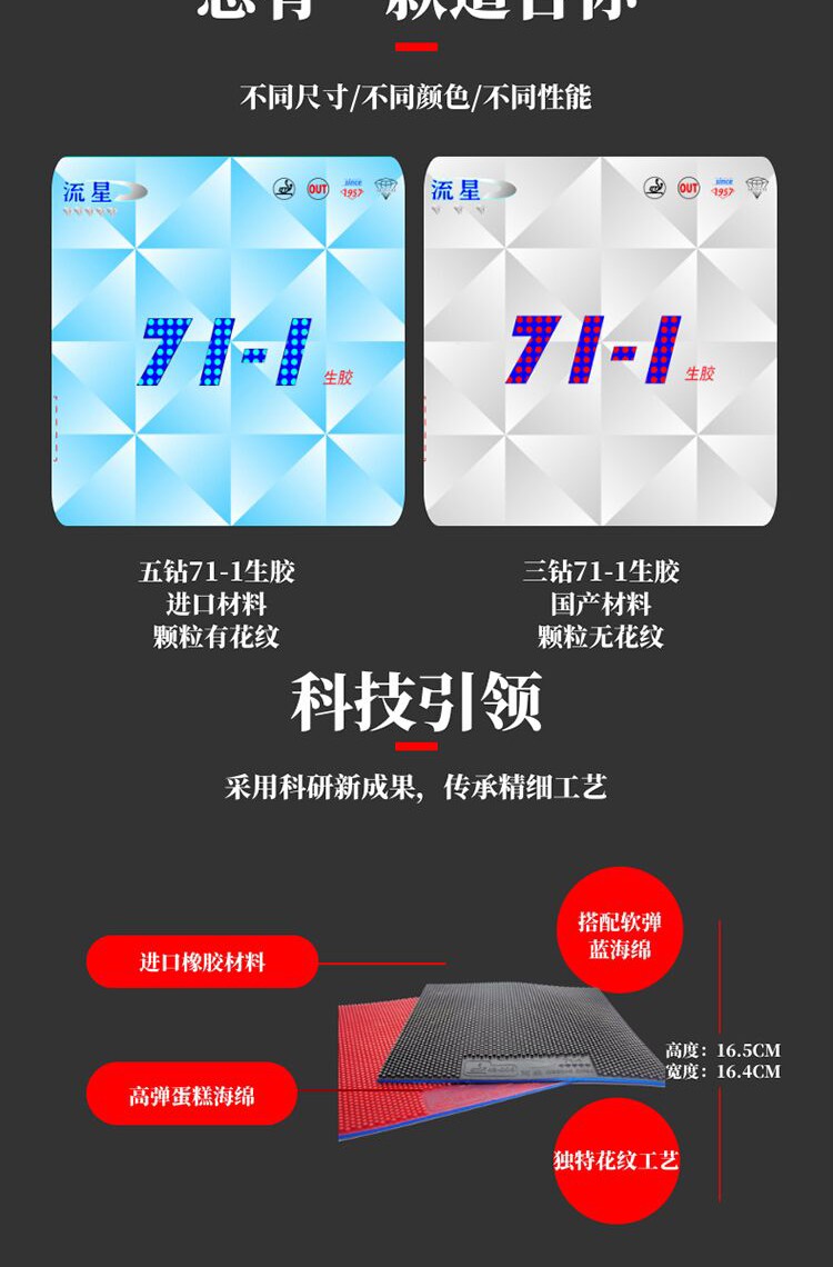 - 商品名稱:流星Liuxing 5鉆71-1 專業(yè)生膠套膠 藍(lán)海綿 乒乓球套膠