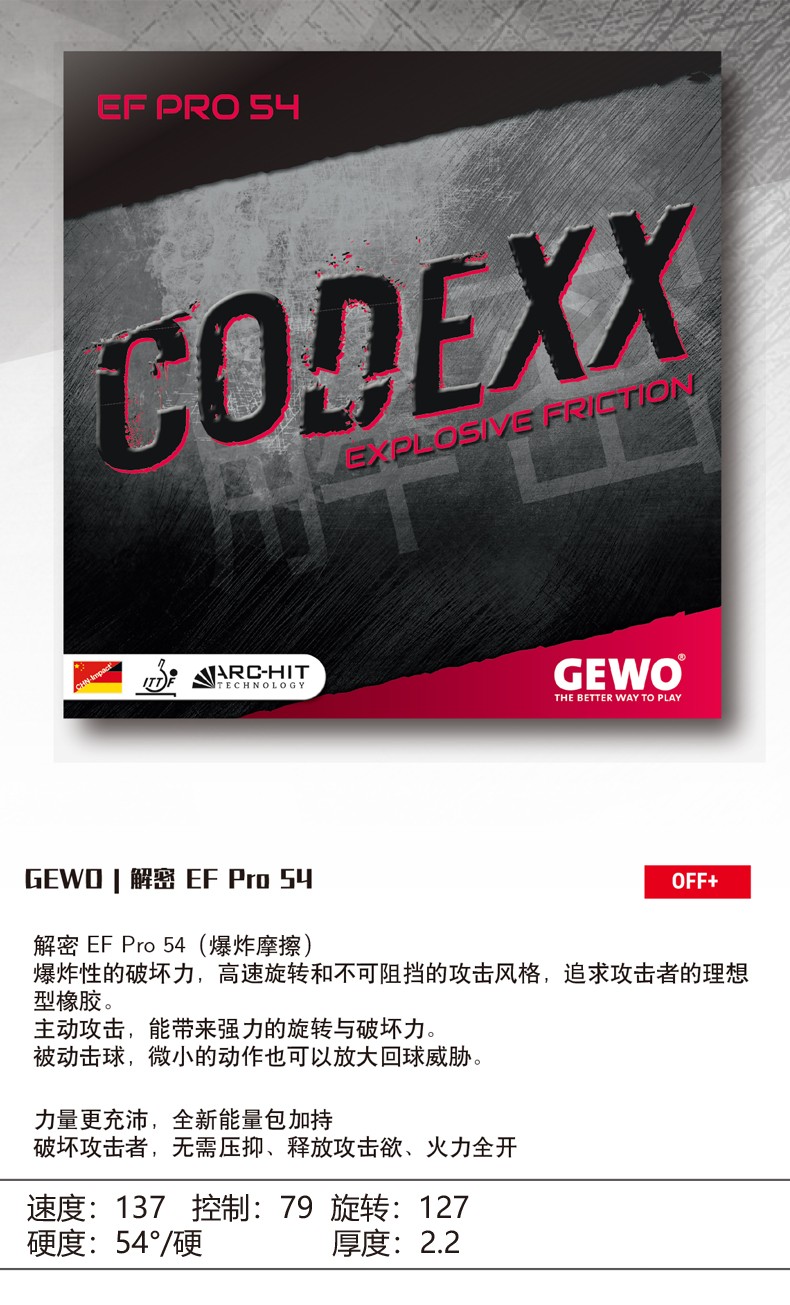 - 商品名稱:杰沃Gewo 解密EF PRO 54 捷沃專業(yè)粘性反膠套膠 德系高彈粘套