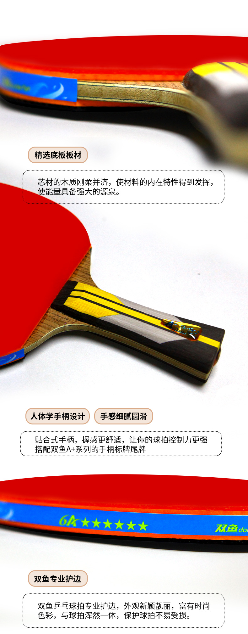- 商品名稱:雙魚(yú)Doublefish 6A+ 六星進(jìn)攻型成品拍 乒乓球拍單拍 初學(xué)者兒童學(xué)生乒乓拍