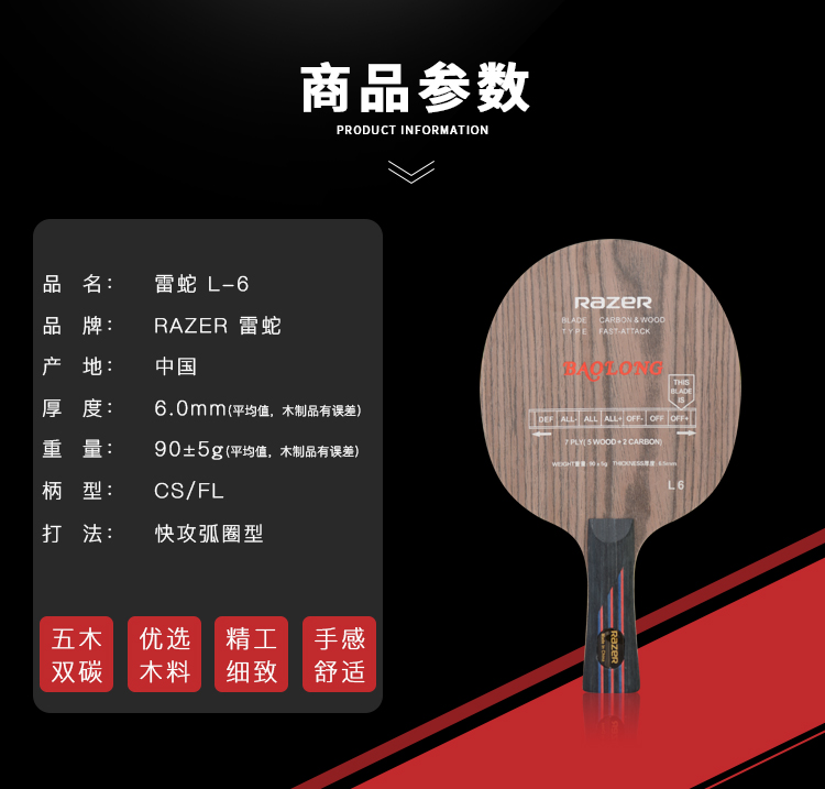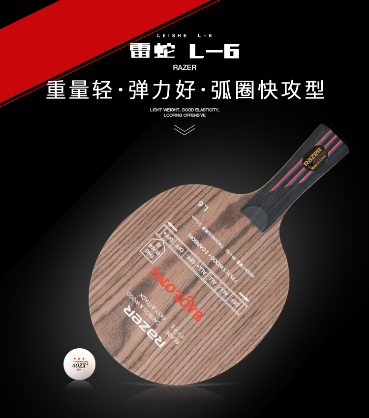 - 商品名稱:雷蛇Razer L-6 專業(yè)乒乓底板 5+2內(nèi)置碳素