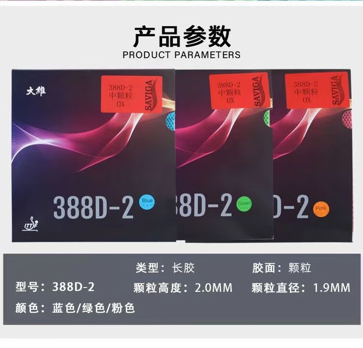 • 商品名稱:大維Dawei 388D-2 長膠單膠皮彩色版 388D2中顆粒長膠彩色單膠皮