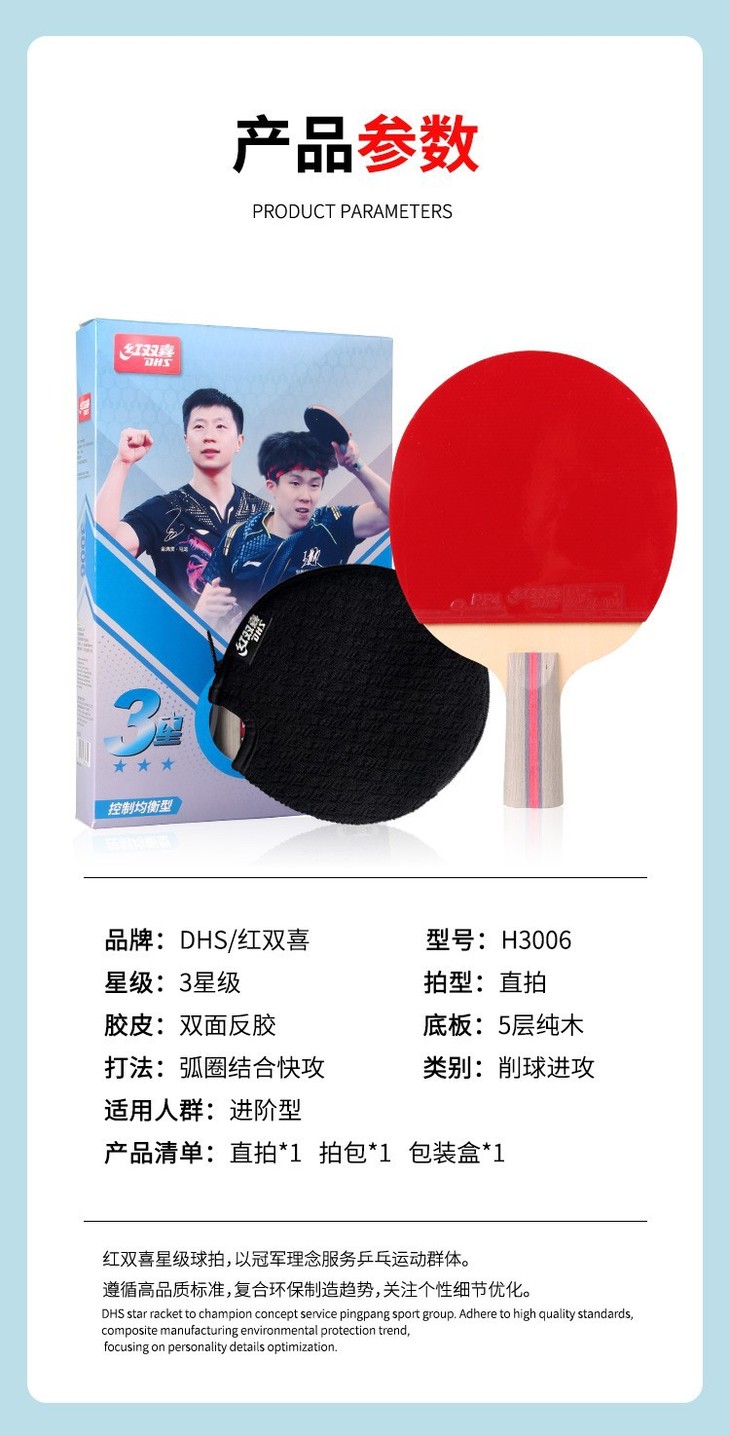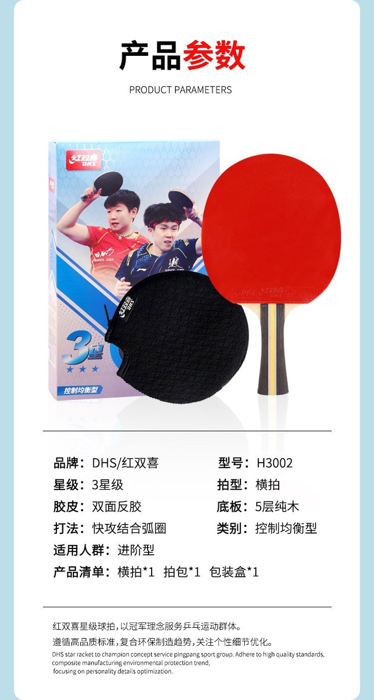 - 商品名稱:紅雙喜DHS H3星 成品拍 訓練入門成品拍