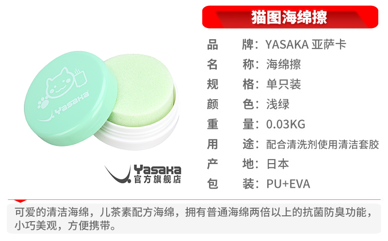 • 商品名稱:亞薩卡Yasaka Z202 貓圖素殼 乒乓套膠洗膠棉海綿擦