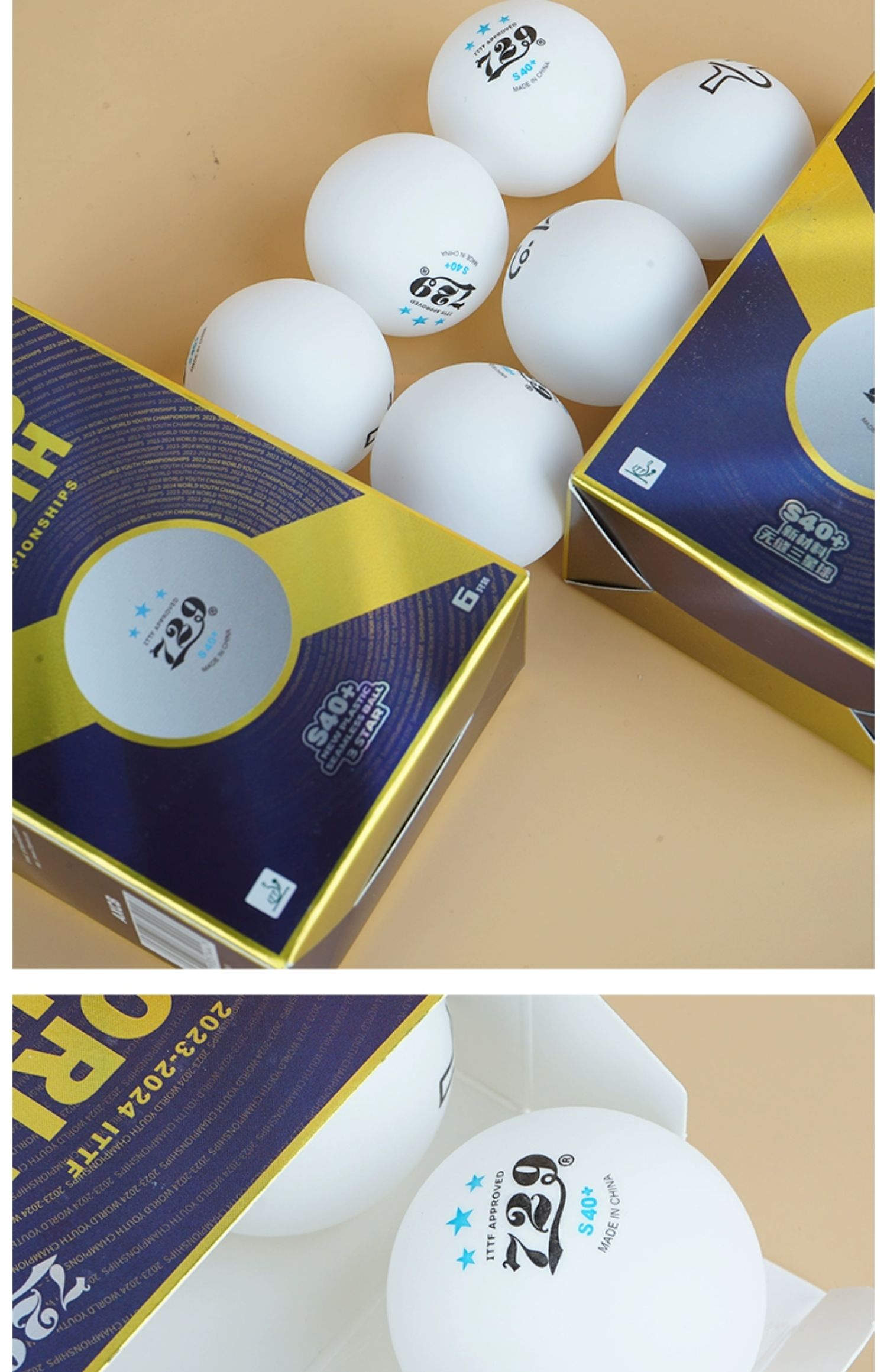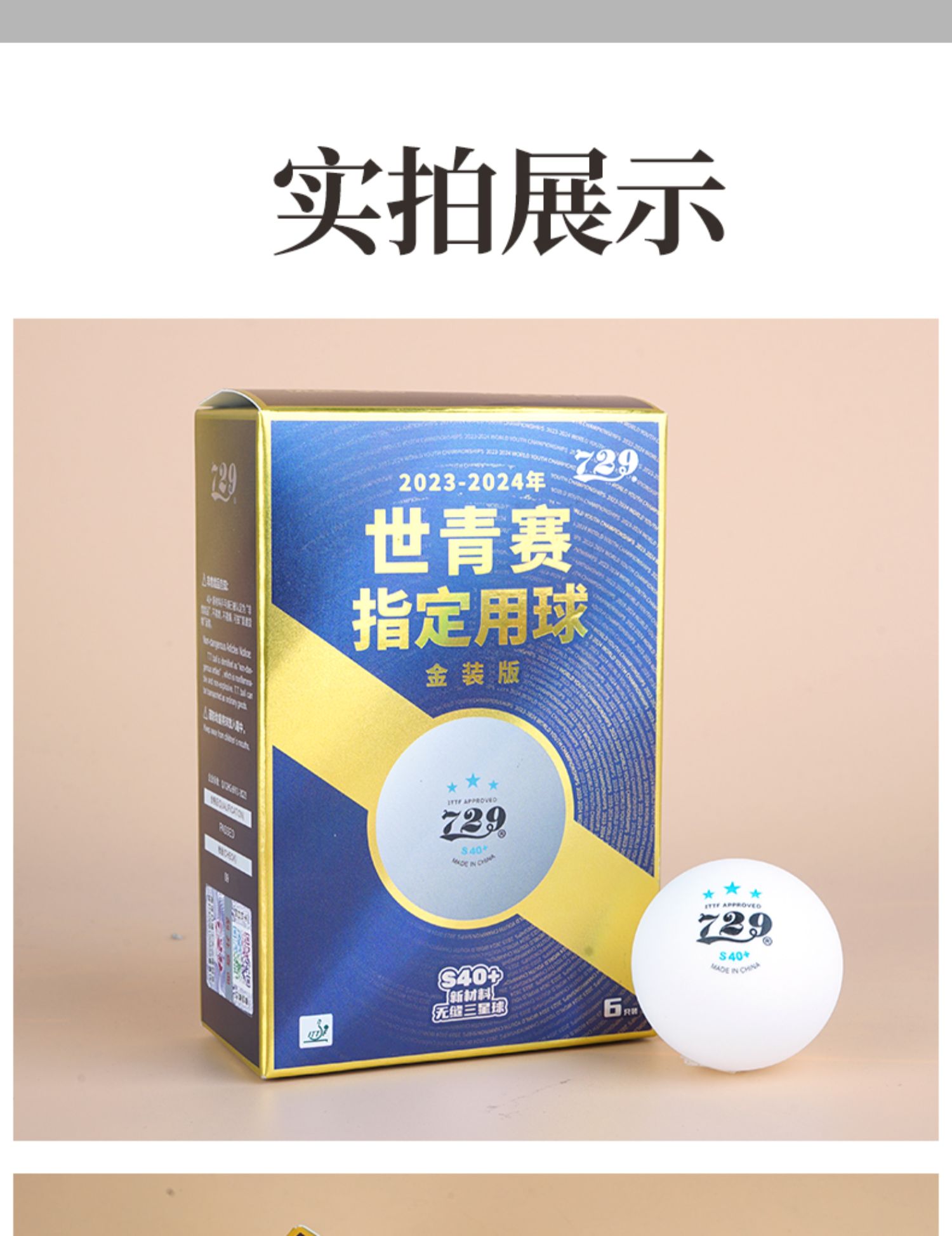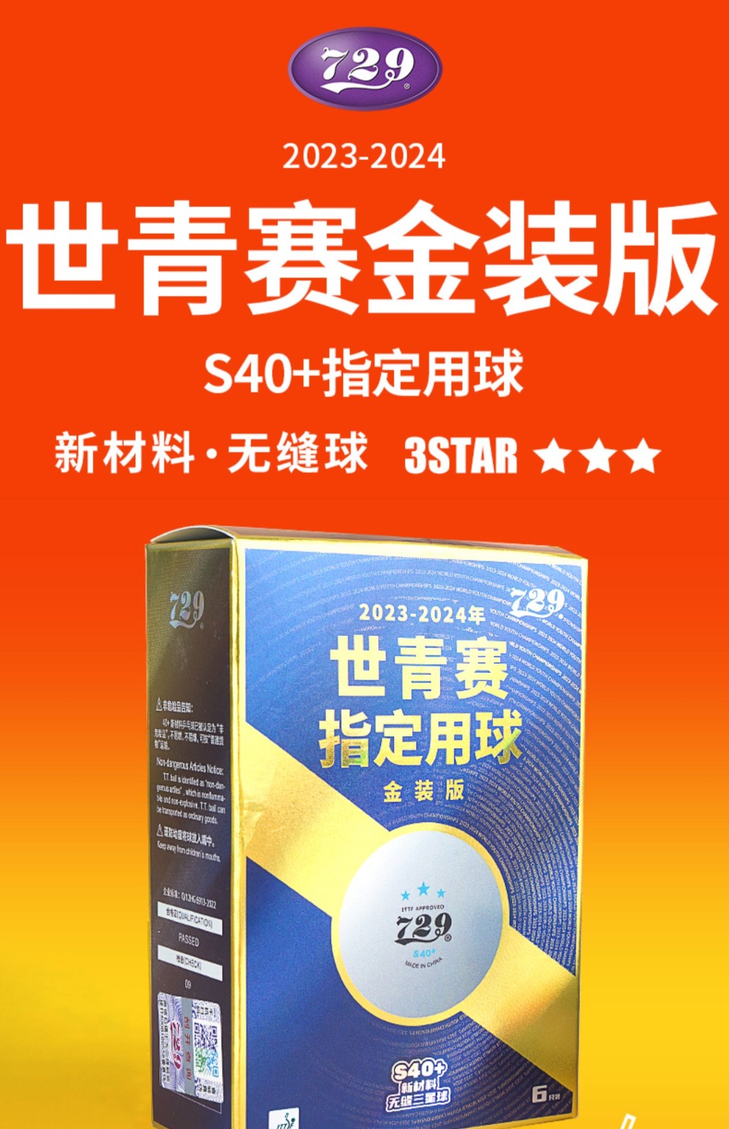 - 商品名稱:七二九729 S40+ 三星級 世青會指定用球 金裝無縫乒乓球