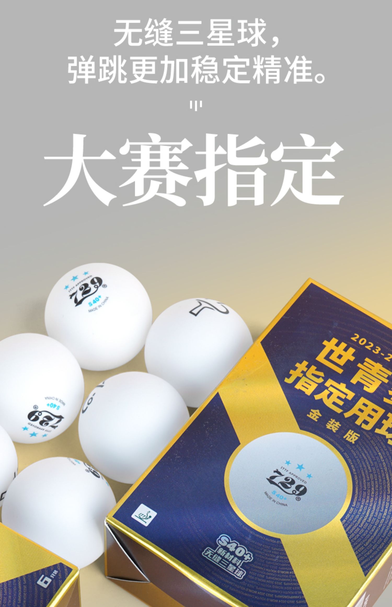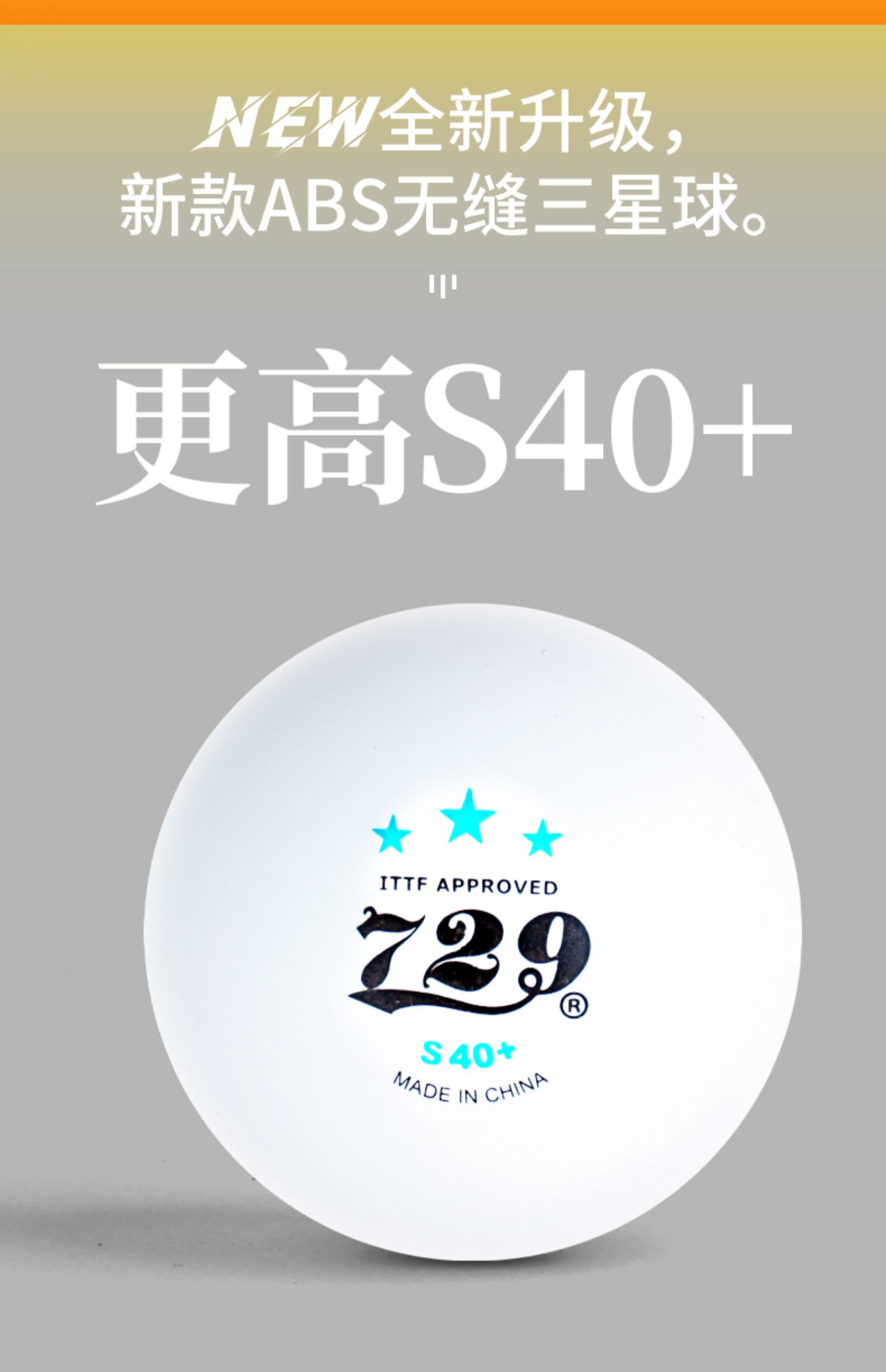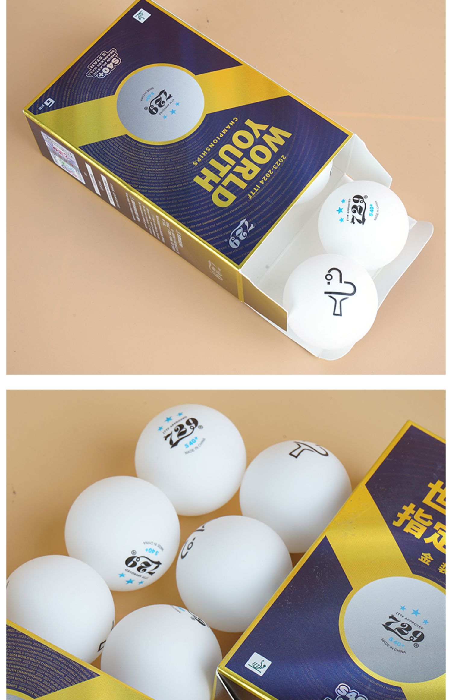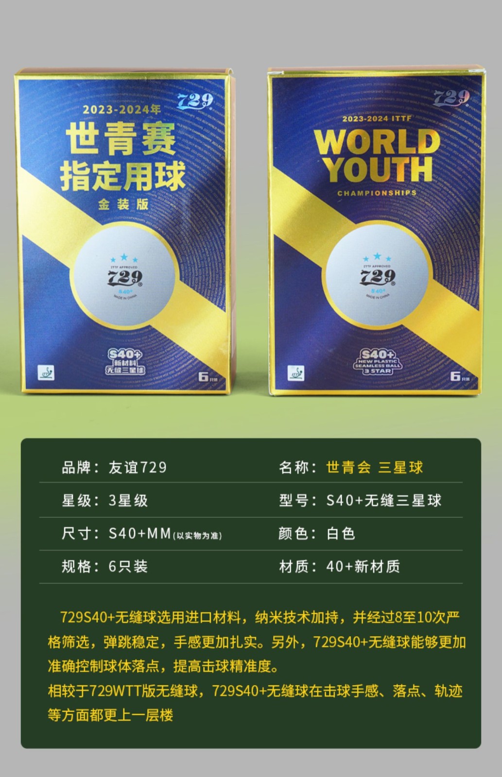 - 商品名稱:七二九729 S40+ 三星級 世青會指定用球 金裝無縫乒乓球