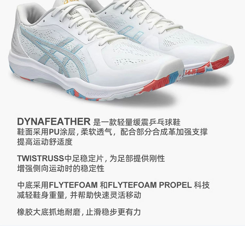- 商品名稱:亞瑟士Asics DYNAFEATHER 1073A064-100 專業(yè)輕便耐磨男女乒乓球鞋 白青色