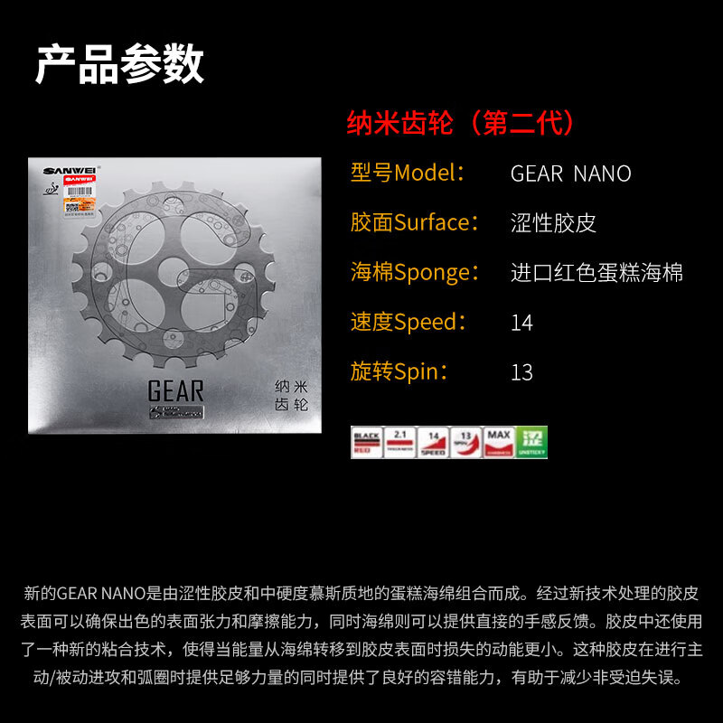 - 商品名稱:三維Sanwei 納米齒輪 專業(yè)澀性反膠套膠 乒乓球反膠套膠