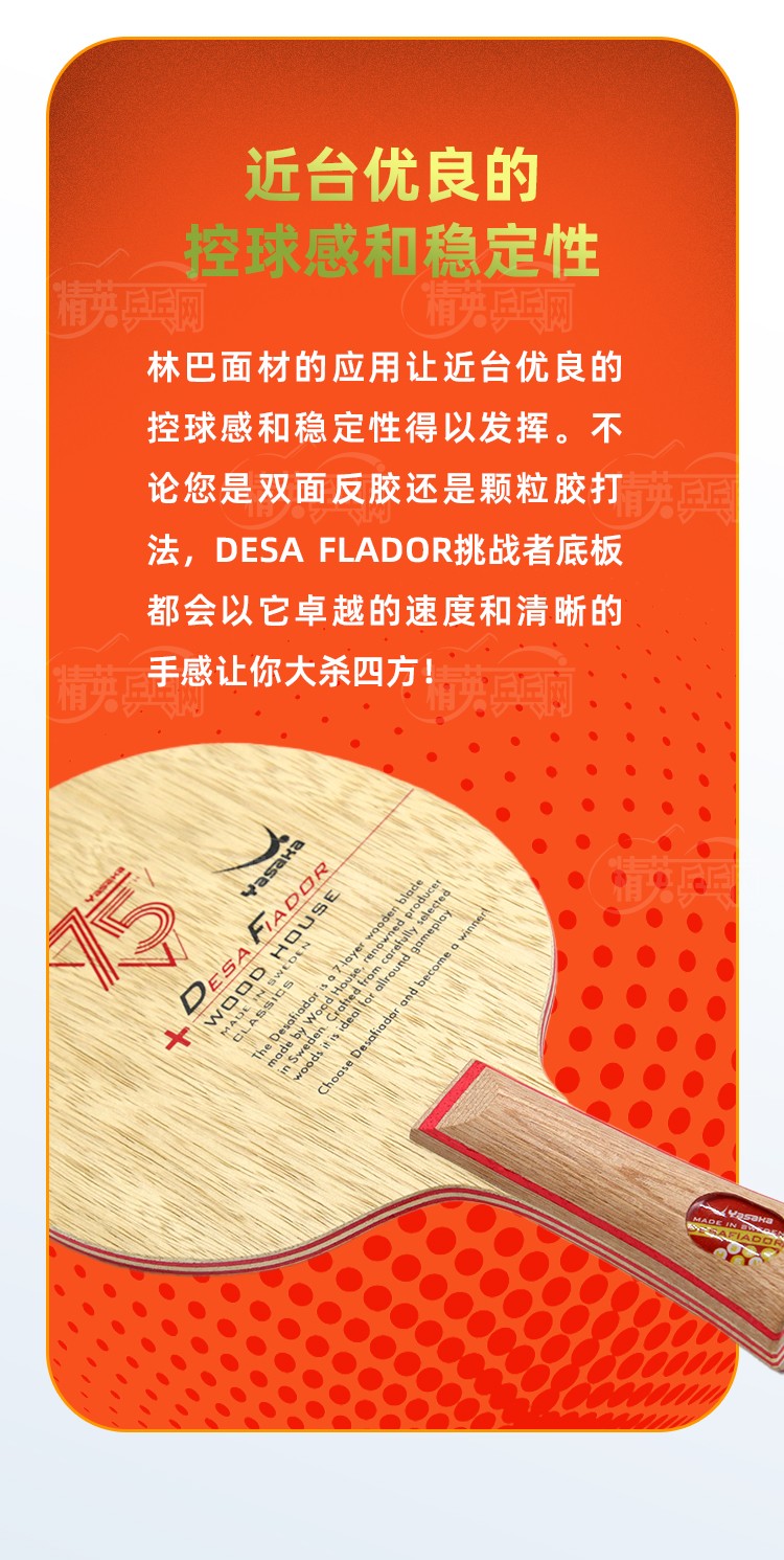 - 商品名稱:亞薩卡Yasaka 挑戰(zhàn)者 DESA FLADOR 專業(yè)乒乓底板 7層純木結(jié)構(gòu)