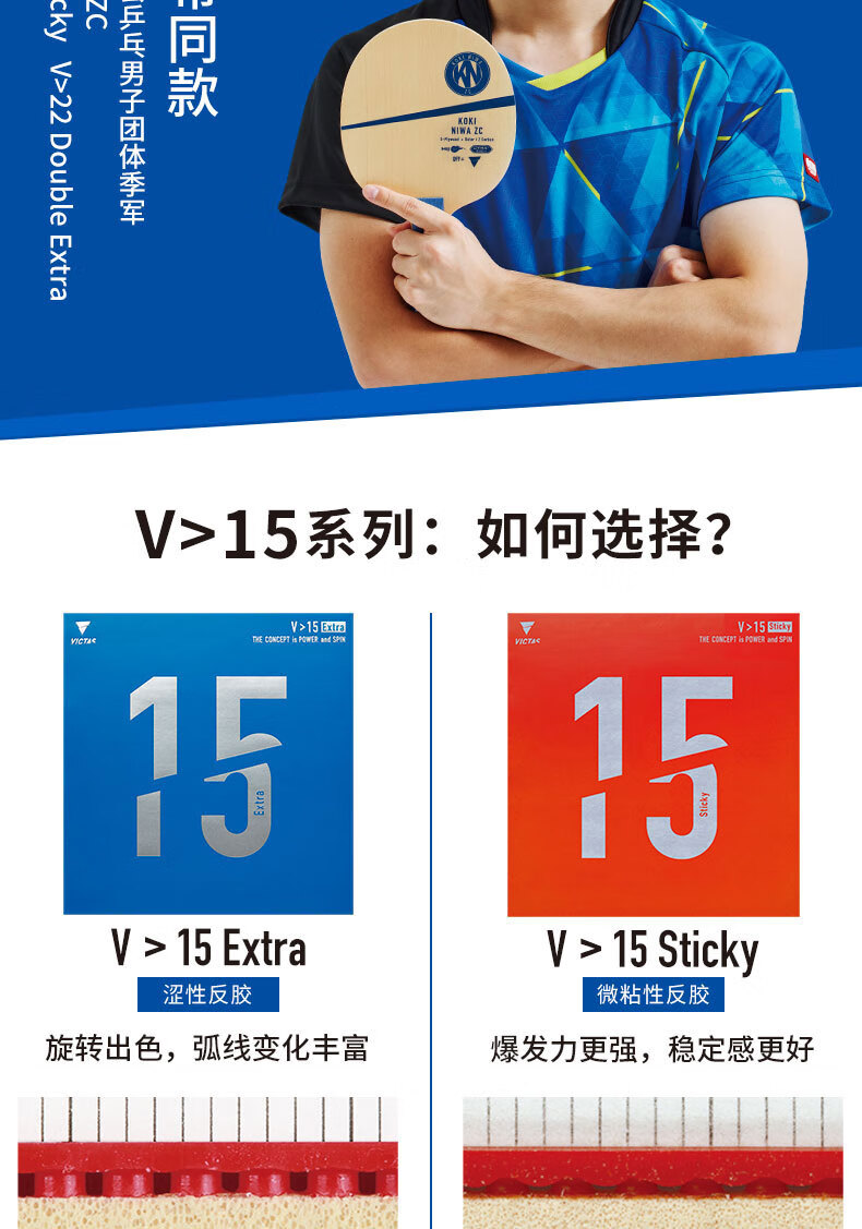 - 商品名稱:Victas維克塔斯 V15 sticky 200120乒乓球膠皮 丹羽孝希同款粘性反膠套膠內(nèi)能海綿