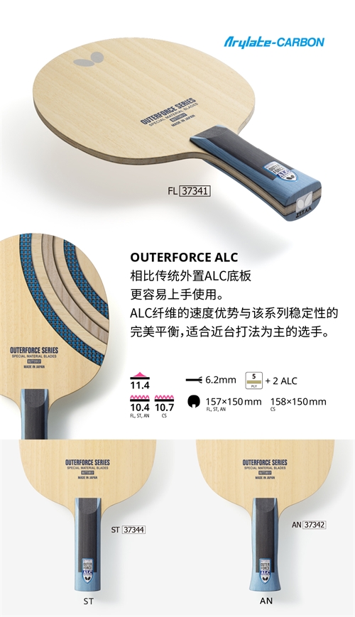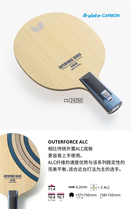- 商品名稱:Butterfly蝴蝶【37341/24250】外力ALC 專業(yè)乒乓球拍底板OUTERFORCE ALC外置5+2結(jié)構(gòu)