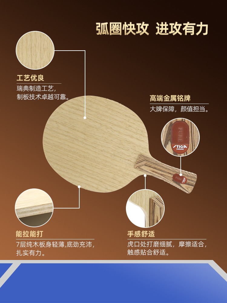 - 商品名稱:Stiga斯帝卡斯蒂卡自然之力純力系列7層純木乒乓球拍底板