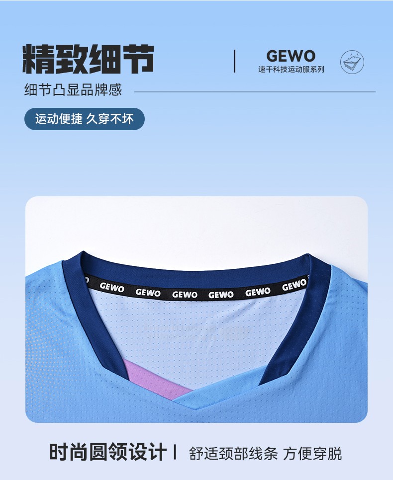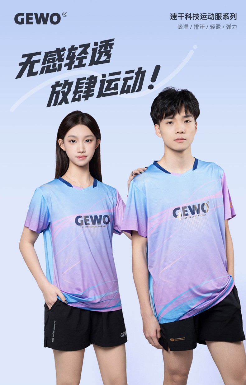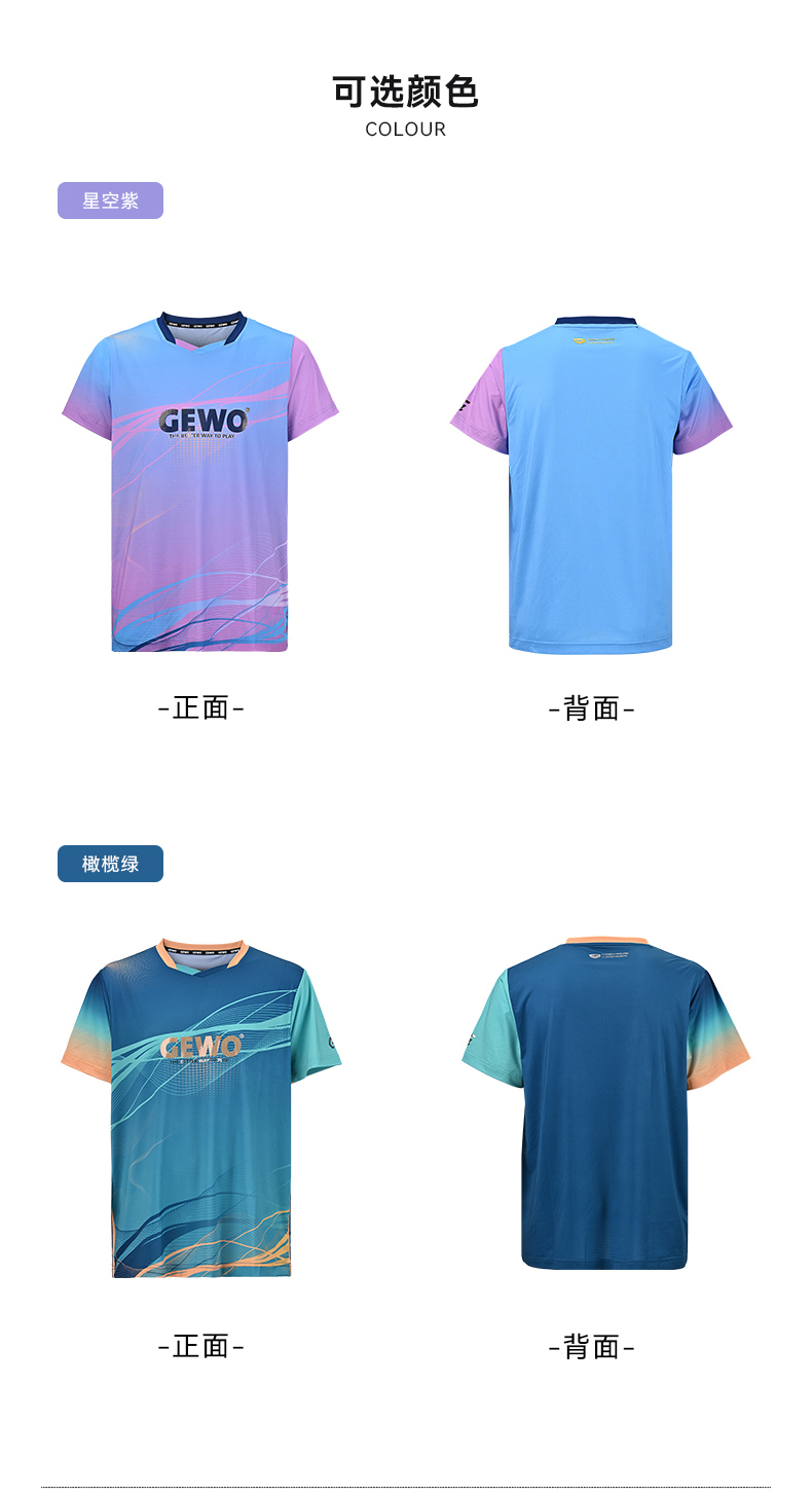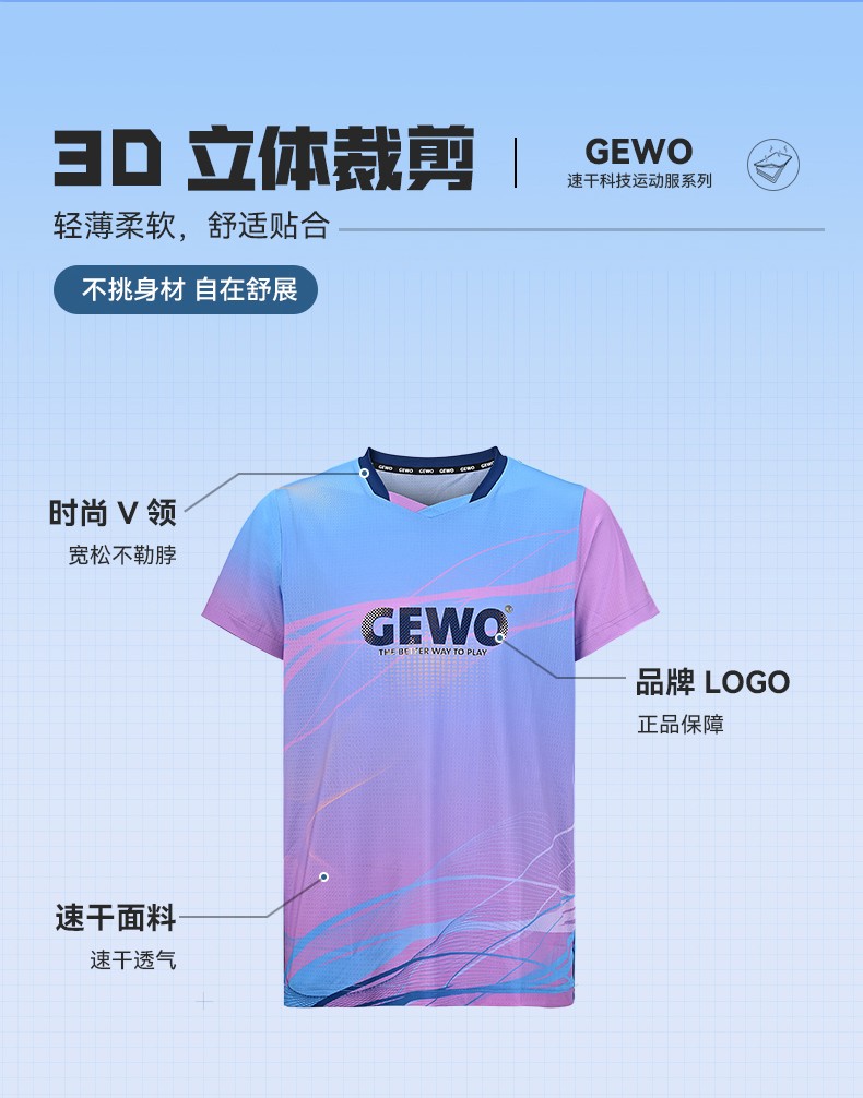 - 商品名稱:GEWO杰沃F15極光專業(yè)乒乓球服捷沃運(yùn)動(dòng)T恤短袖比賽服輕薄透氣速干面料