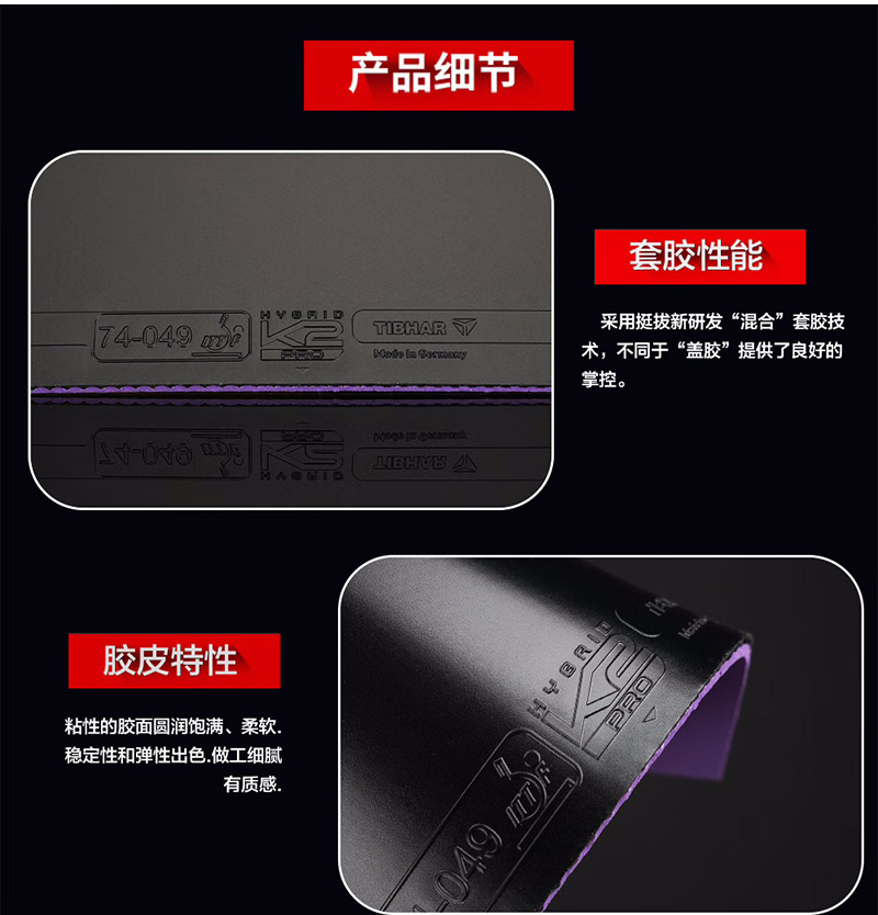 產(chǎn)品名稱:Tibhar挺拔K2Pro紫金k2乒乓球膠皮專業(yè)粘性反膠套膠