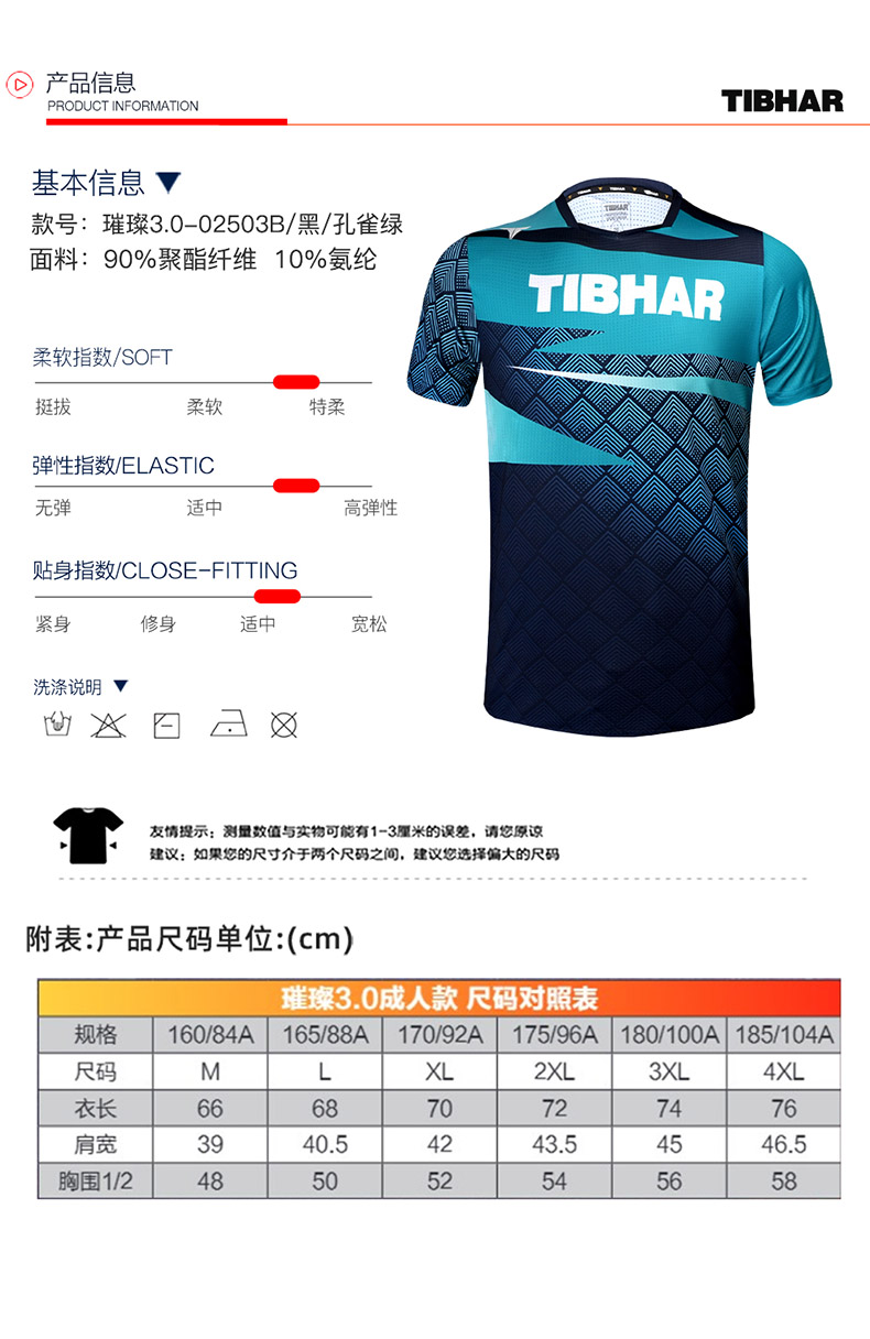 - 商品名稱:TIBHAR挺拔 璀璨3.0 02503乒乓球服夏季透氣T恤短袖乒乓球運動服訓(xùn)練服