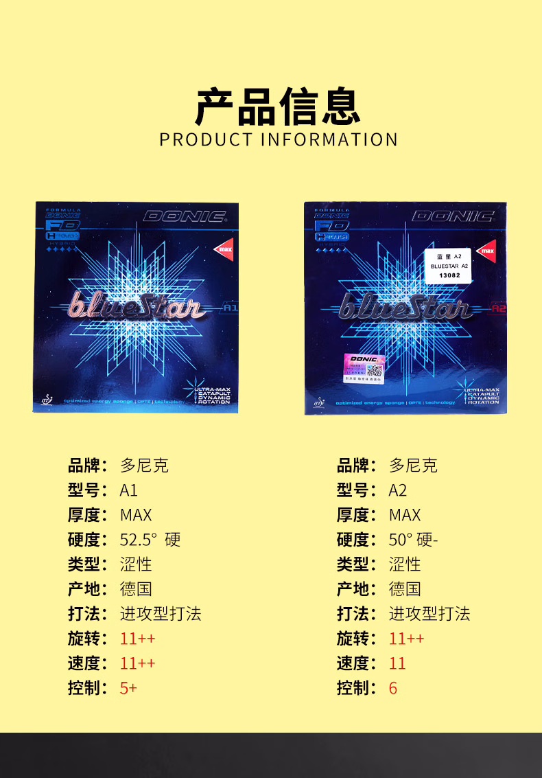 - 商品名稱:Donic多尼克13081藍(lán)星A1專業(yè)乒乓球膠皮正手澀性反膠套膠德系高彈內(nèi)能海綿