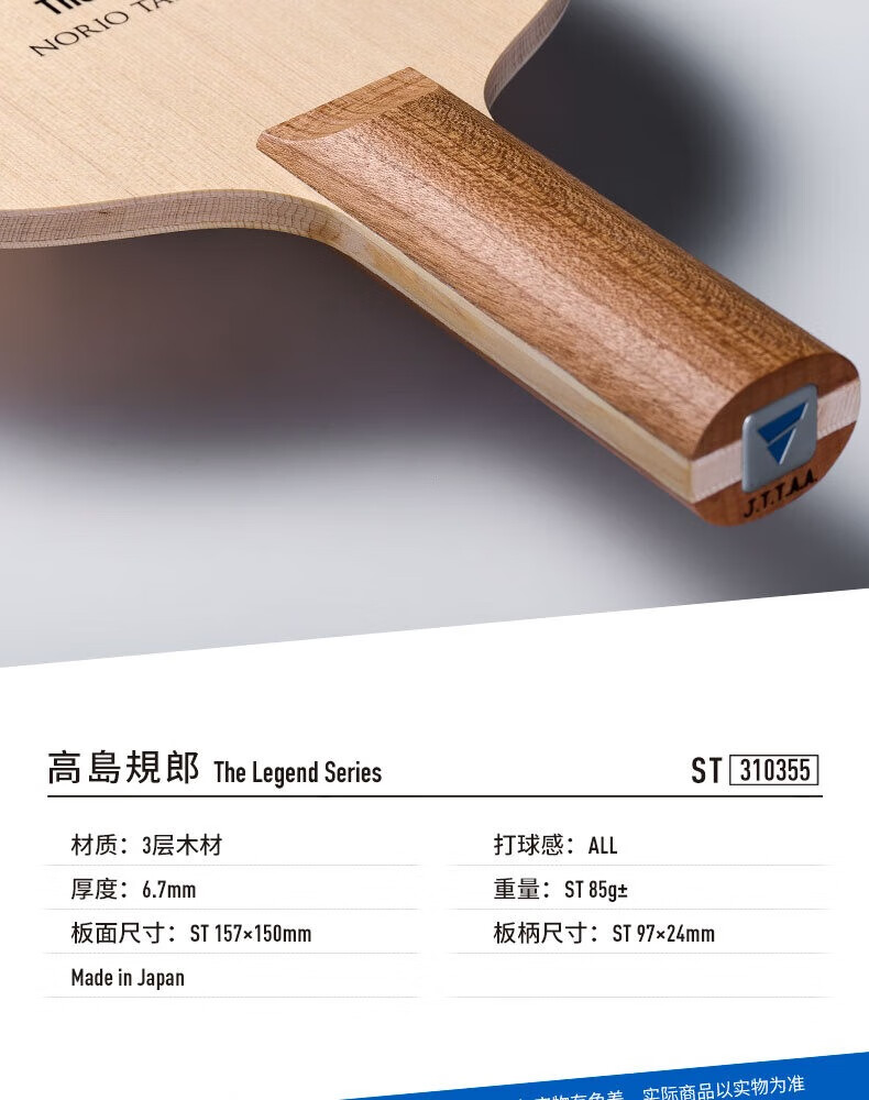 - 商品名稱:Victas維克塔斯高島規(guī)郎純木底板乒乓球拍橫板削球板5層純木310355檜木面材削球板