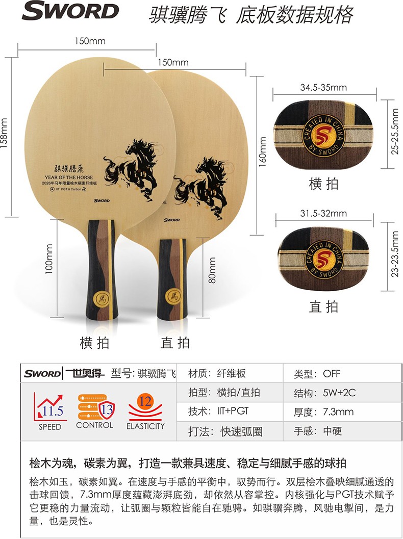 - 商品名稱:Sword世奧得乒乓球拍2026年乒乓球底板碳素纖維板馬年限定款訓(xùn)練比賽拍