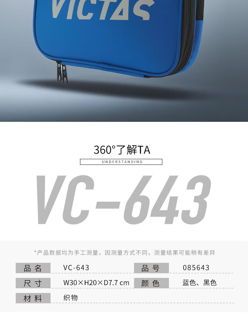 - 商品名稱:Victas維克塔斯乒乓球拍套雙層方形球拍包便攜收納耐磨VC643藍(lán)色黑色