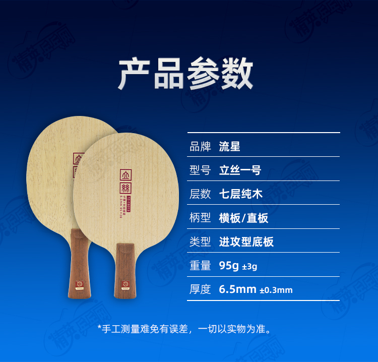 - 商品名稱:METEOR流星立絲一號(hào)乒乓球底板7層純木底勁足進(jìn)攻型乒乓球拍底板