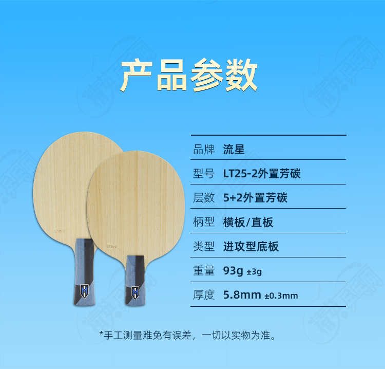 - 商品名稱:METEOR流星LT25-2乒乓球底板5+2外置芳碳快攻弧圈乒乓球拍底板
