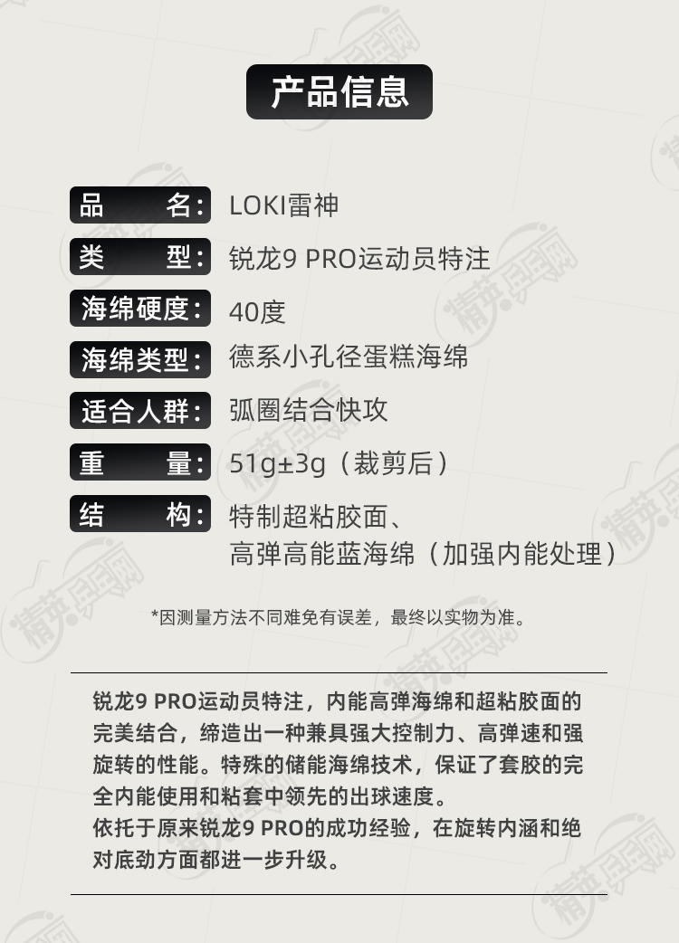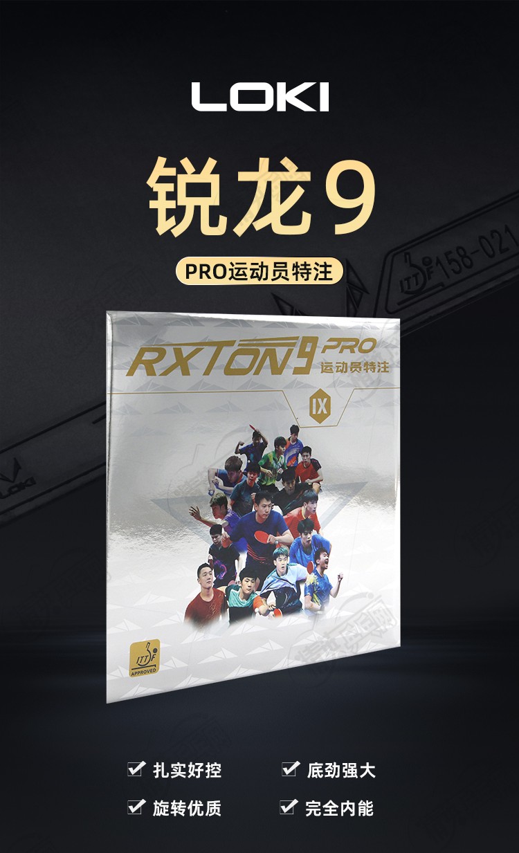 - 商品名稱:LOKI雷神銳龍9 PRO運(yùn)動(dòng)員特注乒乓球膠皮高粘內(nèi)能免灌弧圈型乒乓套膠