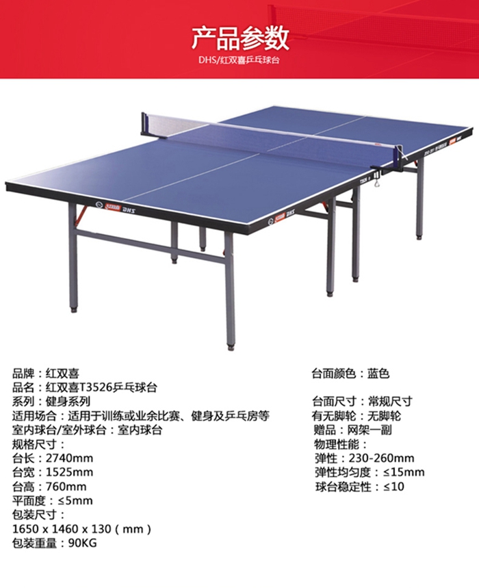 • 商品名稱:紅雙喜T3526乒乓球臺球桌