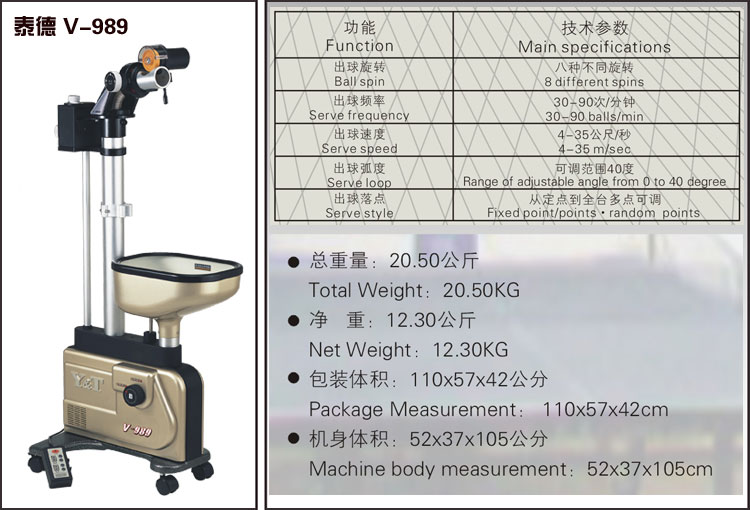 - 商品名稱:泰德Y&T發(fā)球機(jī)V-989