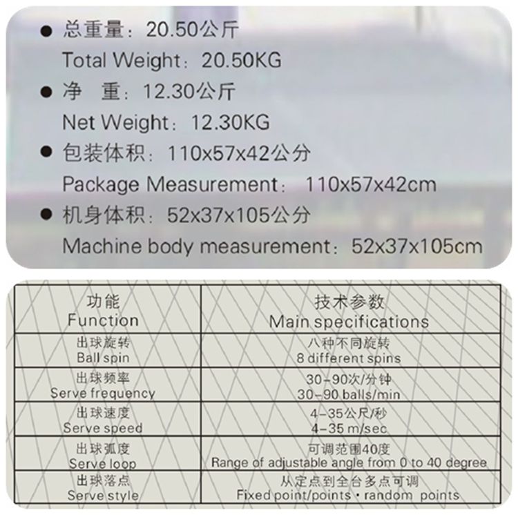 (注:發(fā)球機(jī)送貨費(fèi)用單獨(dú)計(jì)算,根據(jù)發(fā)往地區(qū)不同具體確定。)