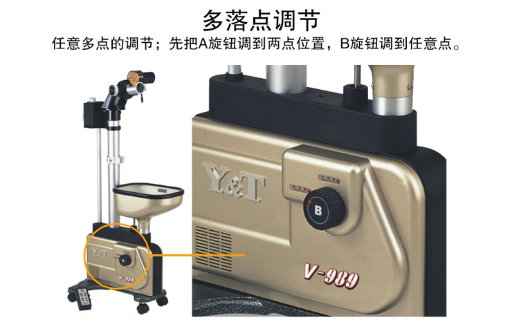 在V—988所有特點(diǎn)的基礎(chǔ)上,增加了“出球任意點(diǎn)”功能,該功能的選擇采用旋鈕式設(shè)計(jì),操作簡單快捷。
