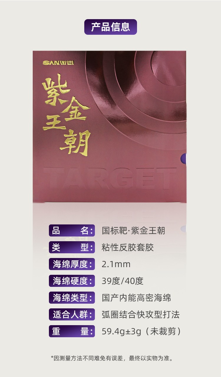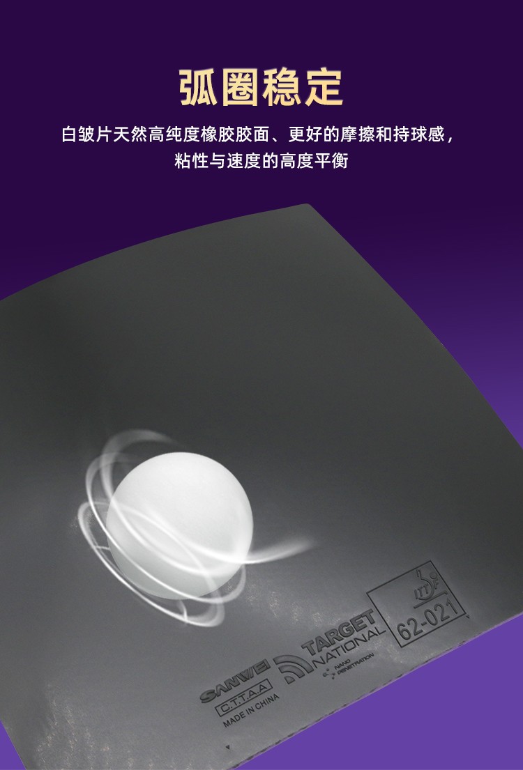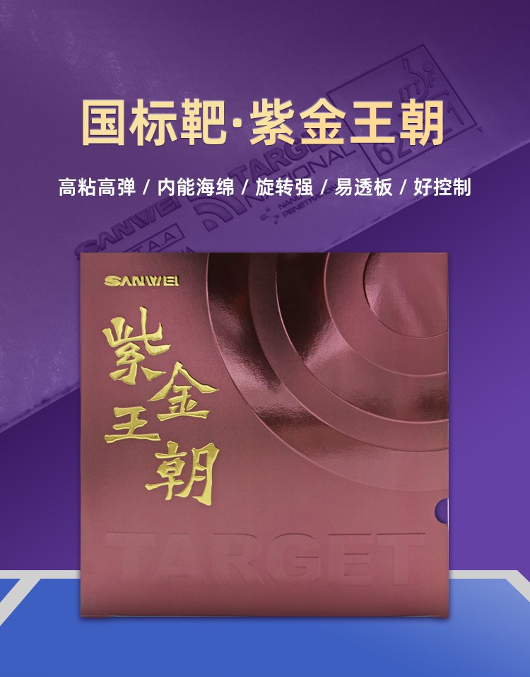 Sanwei三維國標(biāo)靶紫金王朝專業(yè)乒乓球膠皮內(nèi)能海綿粘性反膠套膠